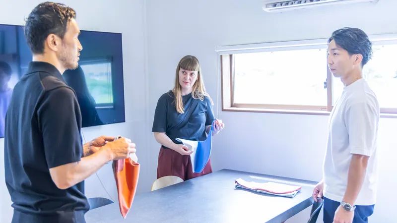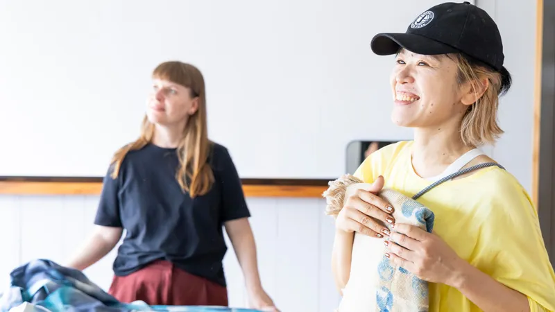 「常に舗装されていない道を選び、世界にポジティブな影響を与えていきたい」と願うルフトマン氏。そんな彼女に加藤氏は京丹後のテキスタイルツアーを提案した。
