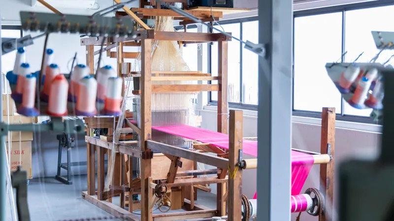 18年ほど前からフランスやイタリアの展示会へ出展するようになった。展示会は出会いの場だ。シルクで作られたリボン織りを展示会に持ち込むと、あるバイヤーが「素晴らしい技術だ」と声をかけてくれた。その数年後、コロナ禍が始まる。リボン糸を製造していた二つの会社が倒産。山本氏は失われる技術を守るため、その機械を引き取り、自社で糸づくりから染色まで一貫して行う体制を築いた。結果、糸も織も染めも、全て自社で行う世界でオンリーワンのリボン織りになった。