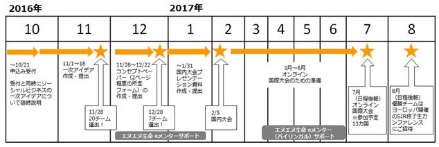 「Social Innovation Relay 2016」の概要および昨年の参加校のコメントは別紙よりご確認ください。 エヌエヌ生命では「中小企業とその経営者が財務や財産の面で安定した将来を確保できるよう支援する」という使命に基づき、「未来の社長」の旗印のもと、未来を担う子どもや学生、若手社会人に教育機会や起業・経営に関する育成機会を提供する活動を行っています。本コンテストはその一環として、取り組んでまいります。