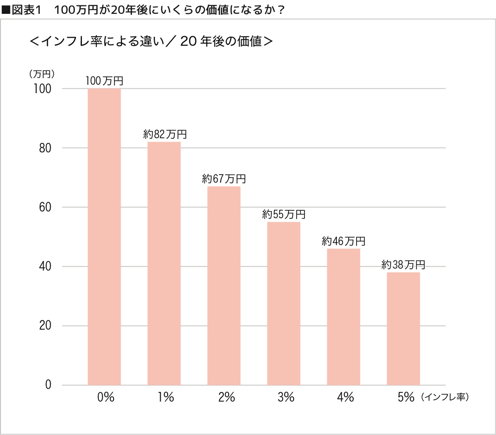 また、何かを購入するためにはより多くのお金が必要となるため、「ものの価値」が上がる一方「お金の価値」が下がる状態になるため、現預金の金額がそのままだとすると、資産価値は目減りしてしまうことになるのです(下図参照)。