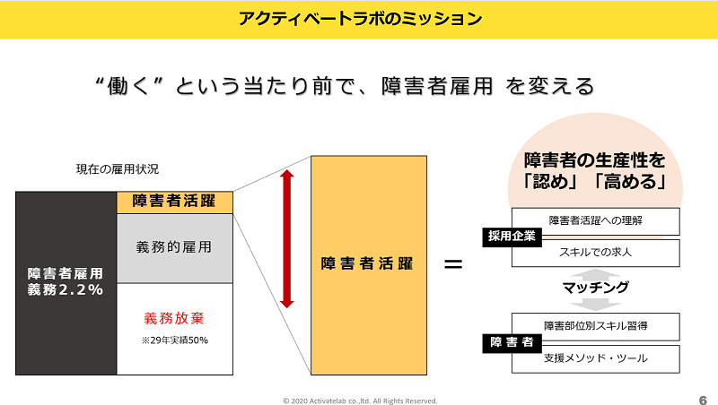 障がい者雇用の法定雇用率2.2%の未達成率はなんと54%(義務づけられた企業およそ10万社のうち)に上る。障がい者がいきいきと働くことのできる社会の実現を掲げ、革新的なサービスを提供している株式会社アクティベートラボ。今回、自ら障がいがある代表取締役 増本裕司 氏に話を聞いた。
