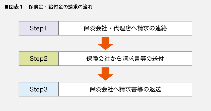 保険金や給付金を請求する場合、以下のような流れになります。